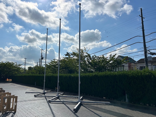 先日行われた陸上自衛隊の式典にて、ジラフポール(可搬式レンタル旗ポール)を3基導入いただきました。