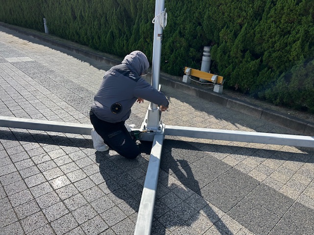 - 搬入→組立→調整→設置→掲揚テストまで一貫対応。
