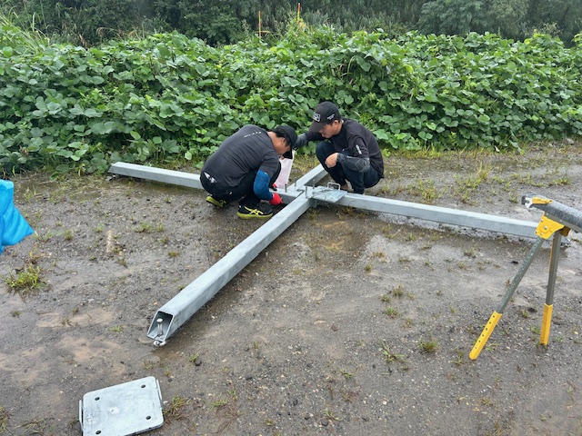 設置当日はあいにくの雨模様でしたが、天候に負けることなく、無事に設置を完了!
