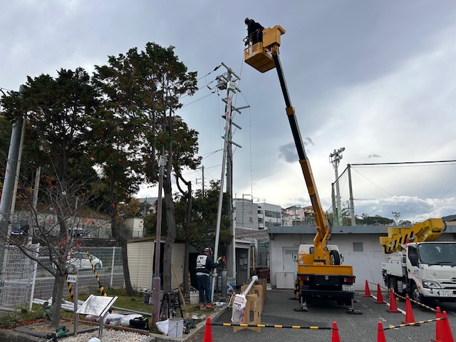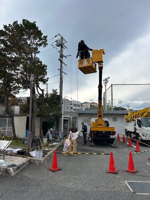 コア抜き作業と並行して、新しいポールの組立を進行。