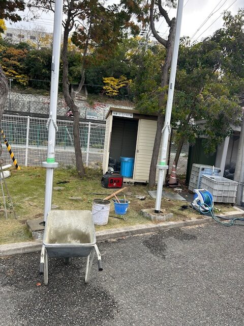 🏴今回は旗ポールの建替え工事をご紹介します。