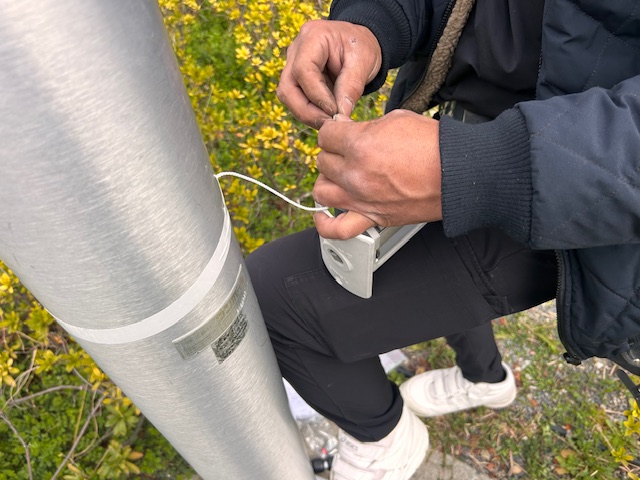We had to place the aerial work platform a bit away from the pole due to the site layout.