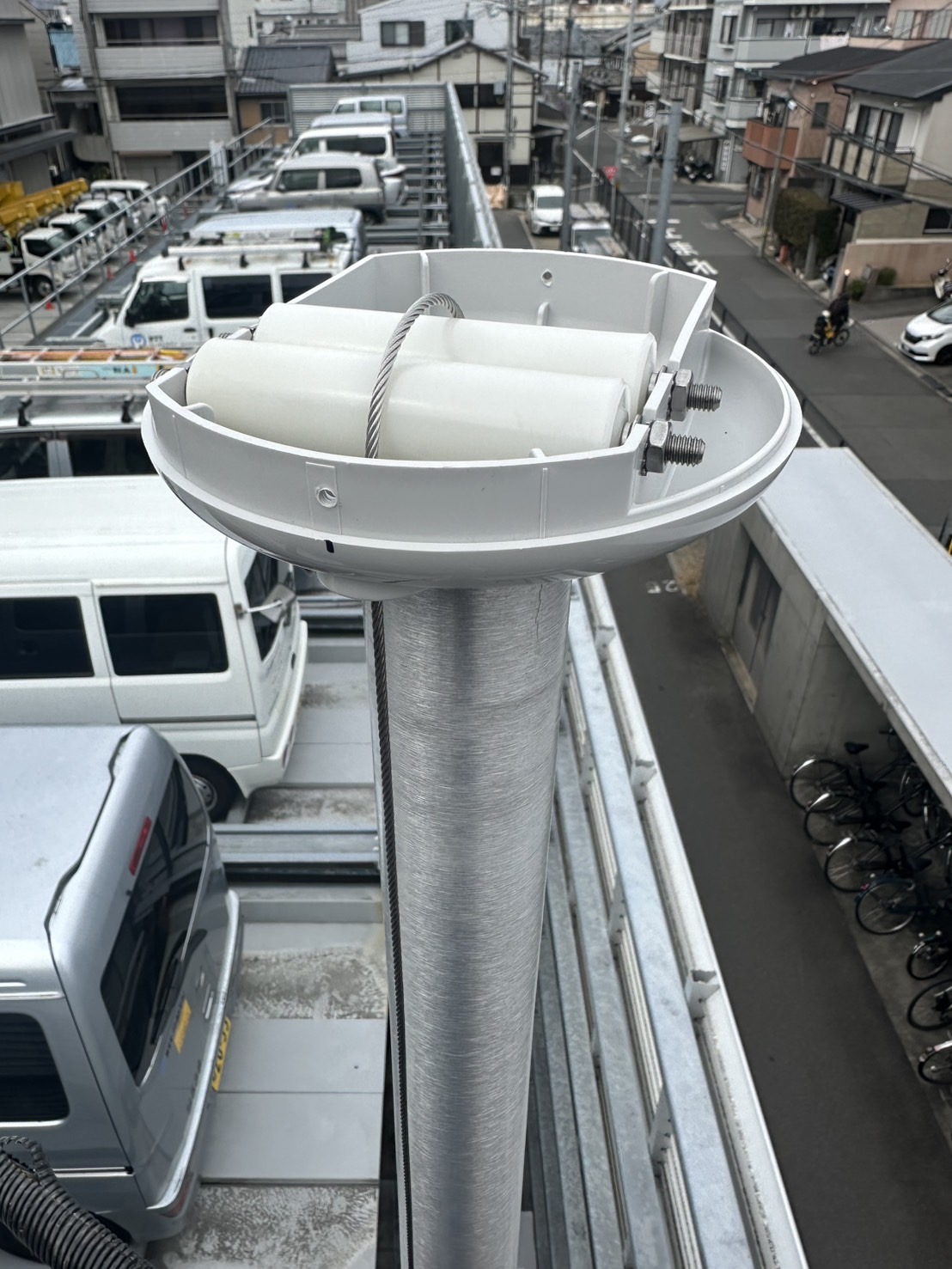 京都市にて、株式会社サンポール様製ワイヤー式旗ポール「FHH(ペーパーポールタイプ)」の修理を行いました。