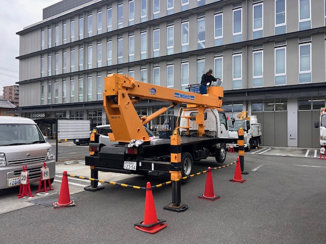 今回は高所作業車を使用し、安全を最優先に作業をすすめました。
